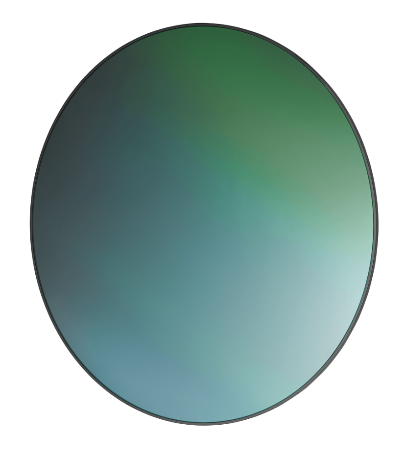 De spiegel is verkrijgbaar in twee verschillende uitvoeringen. De ronde uitvoering is niet gemaakt van glas maar van een stalen plaat. De plaat wordt zo gepolijst dat hij een reflecterende functie krijgt en er allerlei kleuren in het goud te zien zijn, afhankelijk van de lichtinval. Iedere spiegel is uniek en heeft zijn eigen kenmerkende details.