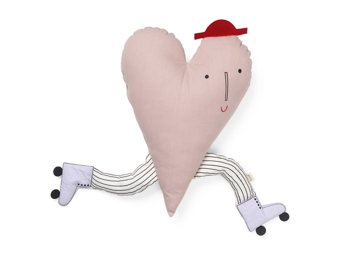 Voeg een zacht en speels element toe aan uw huis met het hartkussen. Gemaakt van GOTS-gecertificeerd biologisch katoen en gevuld met een vulling van gerecycled polyester, toont het kussen een charmant rolschaatshart met verschillende vilten en geborduurde details.
