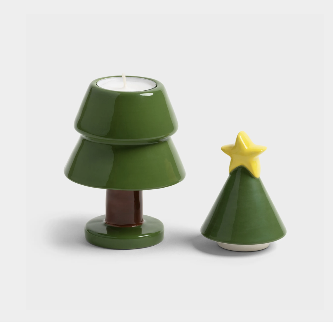 Een kandelaar in boom vorm voor een speelse kerstsfeer! In samenwerking met de Engelse keramist en illustrator Hal Haines. Ze zijn gemaakt van keramiek en met de hand beschilderd in levendige kleuren. Kunnen zowel dinerkaarsen als theelichtjes in.
